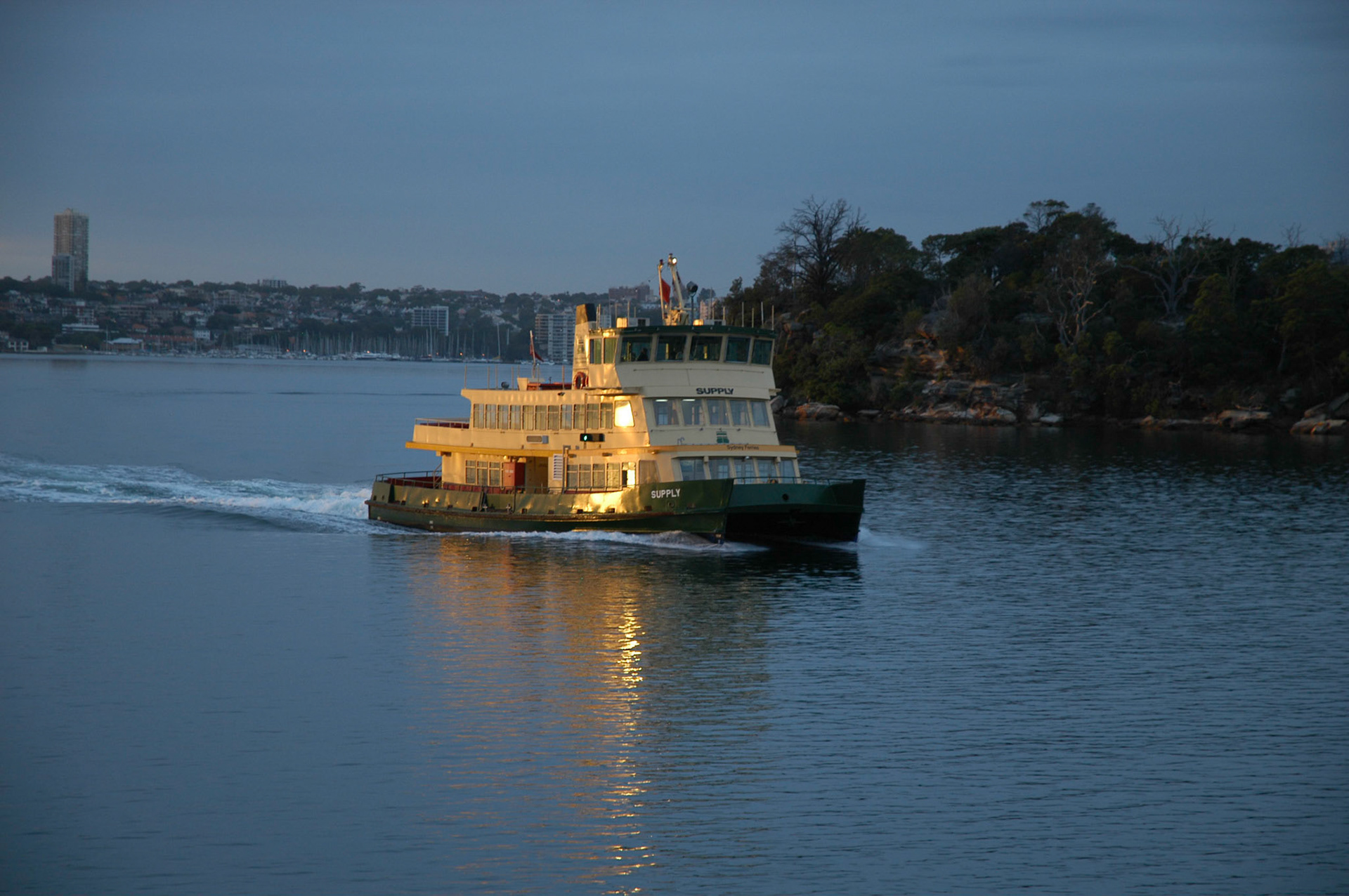 Early morning Manly ferry passing North Head.