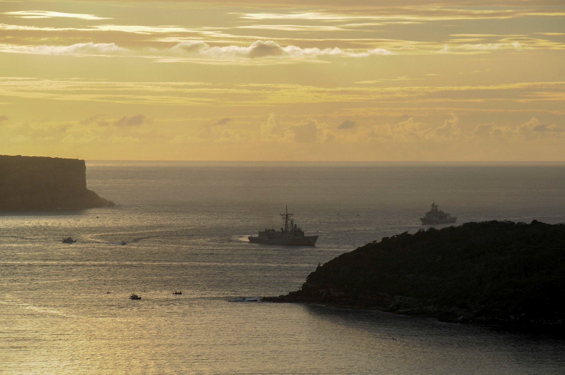Line of Navy boats heading to the harbour